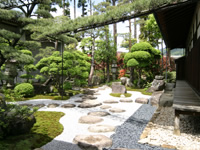 枯山水とは和風庭園の様式のひとつで、水を使わずに石や砂などで山水の風景や水の流れを表現している庭園です。屋内から静かに鑑賞するよう構成されており、白砂の上に大小の自然石を組み合わせることで、ひとつの世界観を創造します。 こうした枯山水庭園は禅寺に多くみられるほか、個人宅でも用いられます。